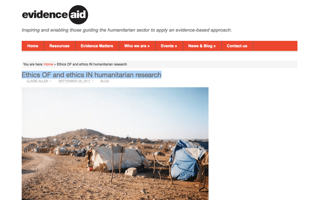 Matthew Hunt recently joined an online conversation posted on the Evidence Aid blog on the ethics of evidence in humanitarian action.