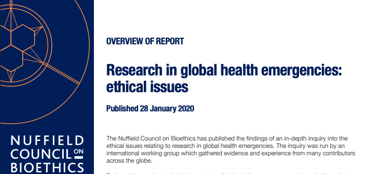 A Nuffield Council background report on ethics of research in global health emergencies by Mitra and Sethi.